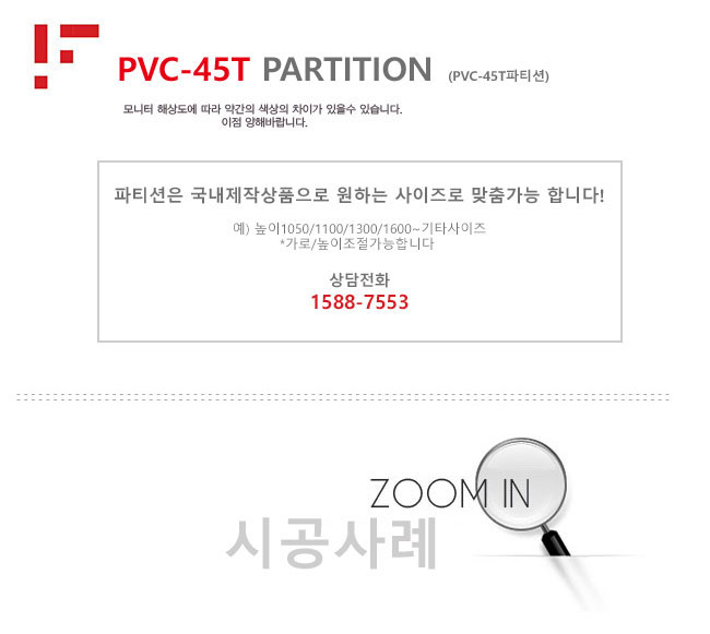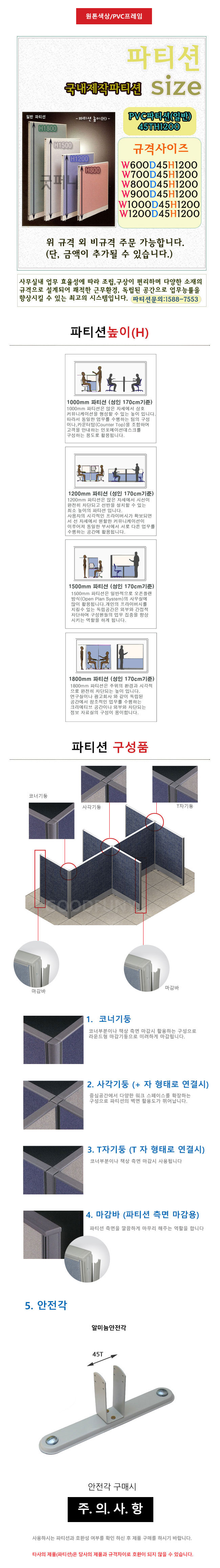 (원톤) PVC파티션/45T/높이(H):1000~1200