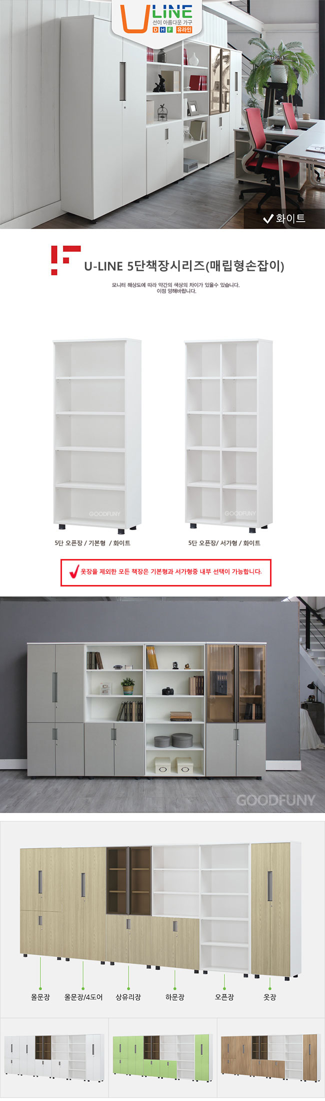 (DF)U-LINE 5단책장시리즈(매립형손잡이)